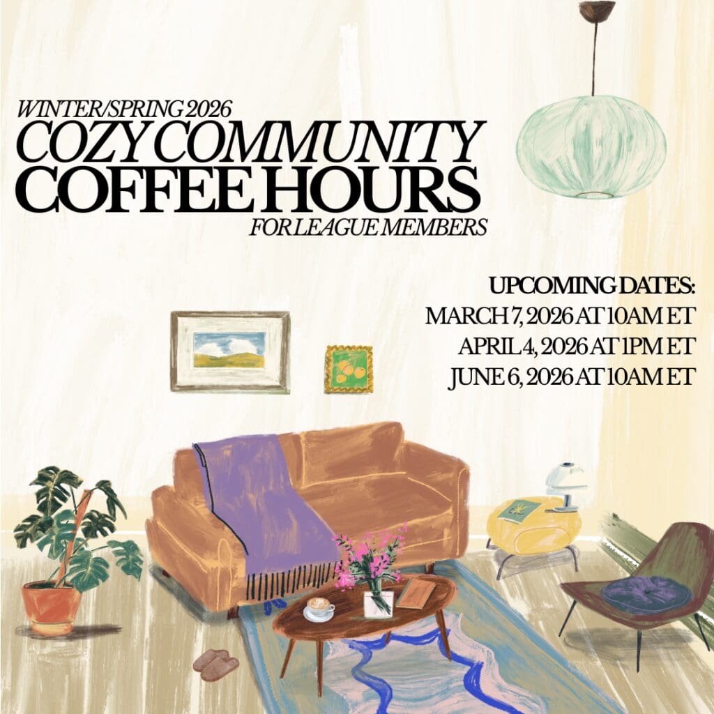 Connect with fellow League members over a cozy Saturday morning coffee in the comfort of your own home!